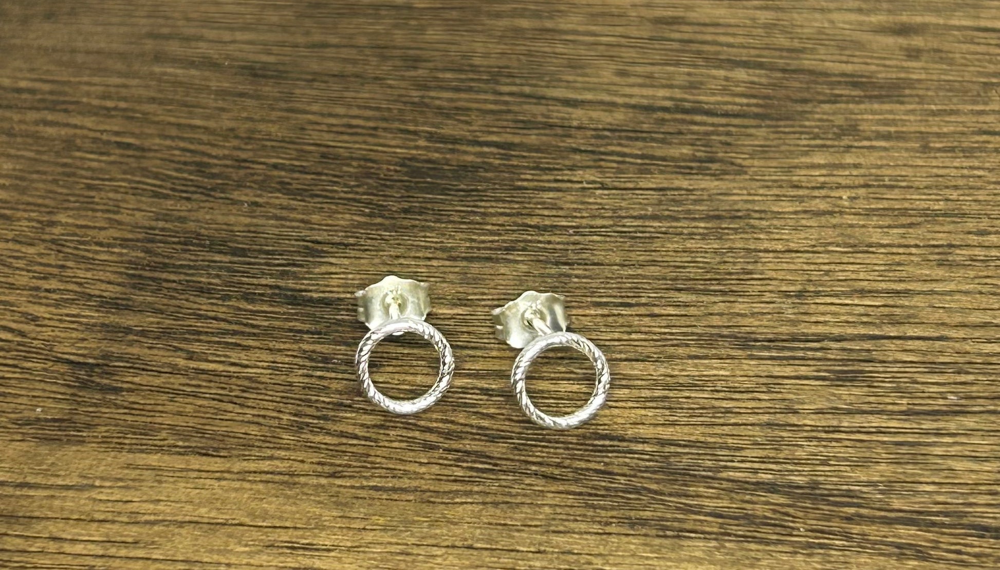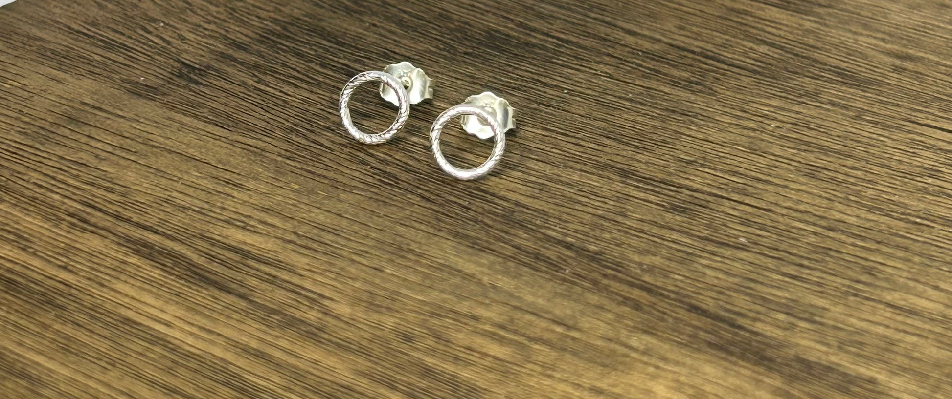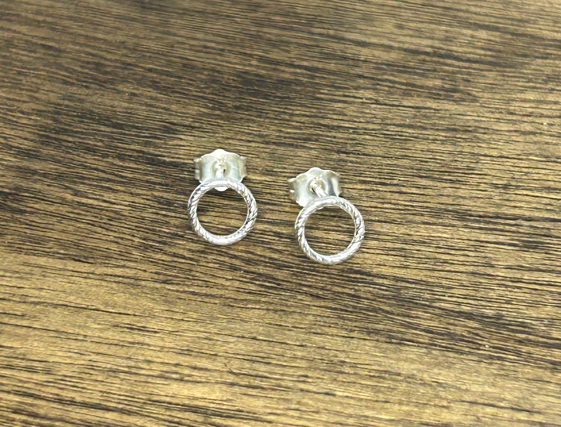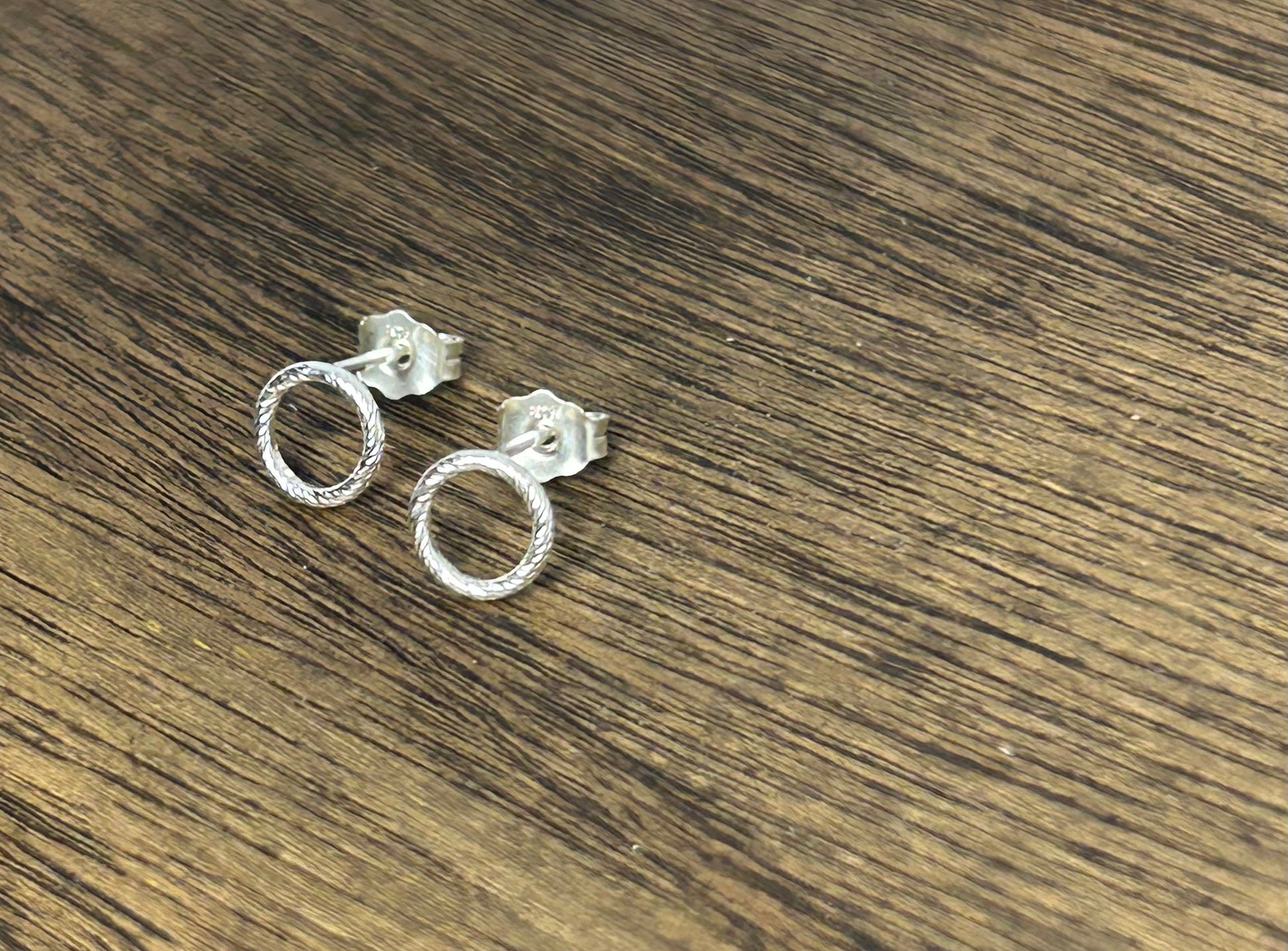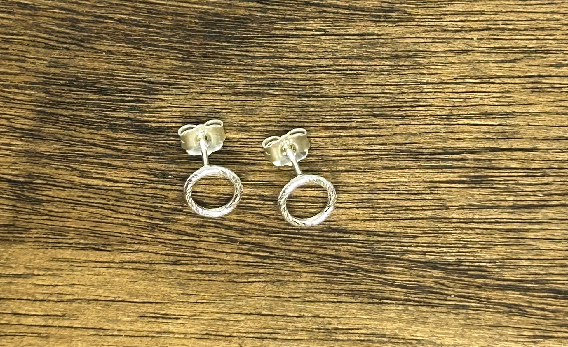 circle stud measures 7mm in diameter with added texture to create a sparkle.