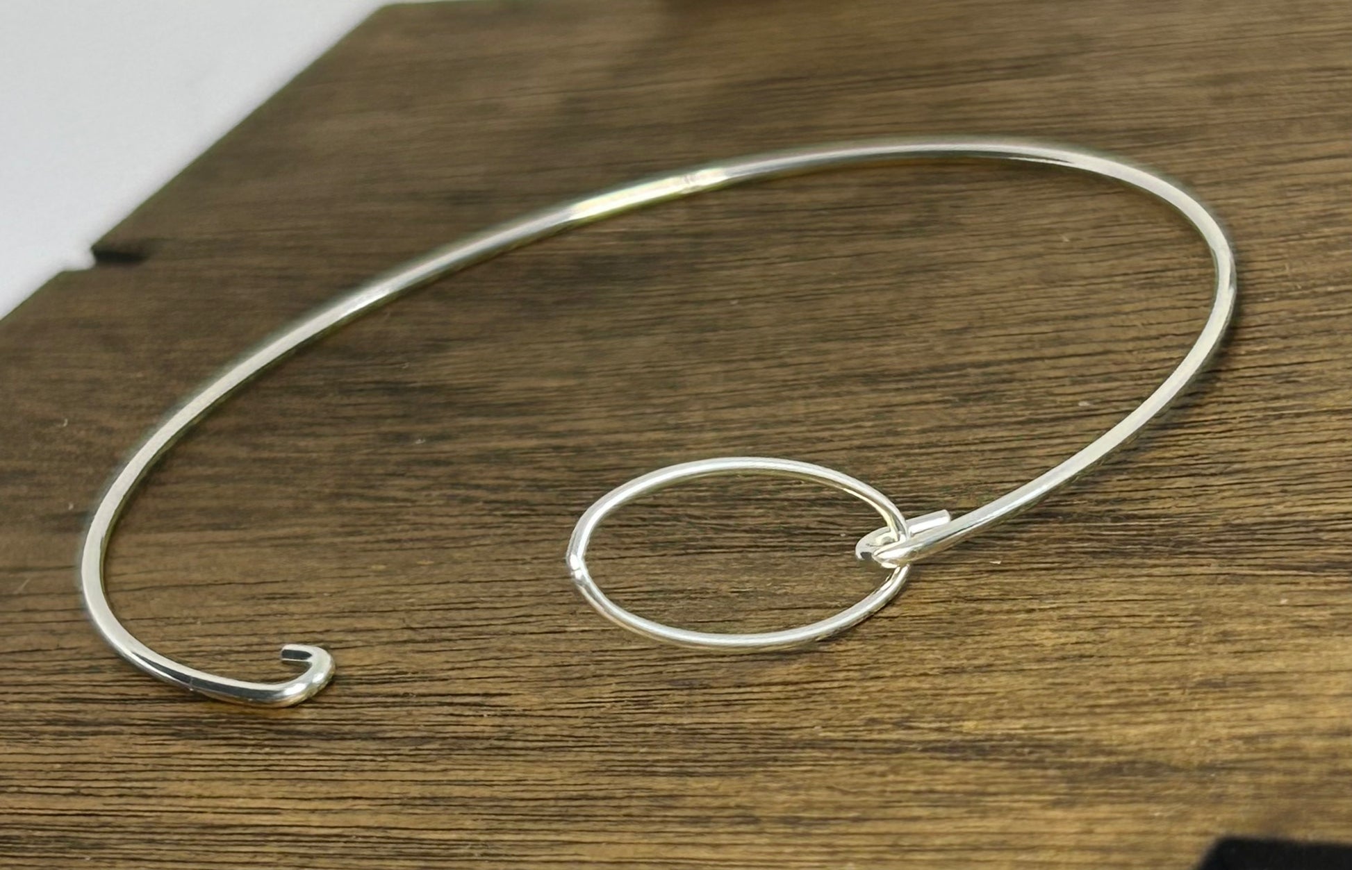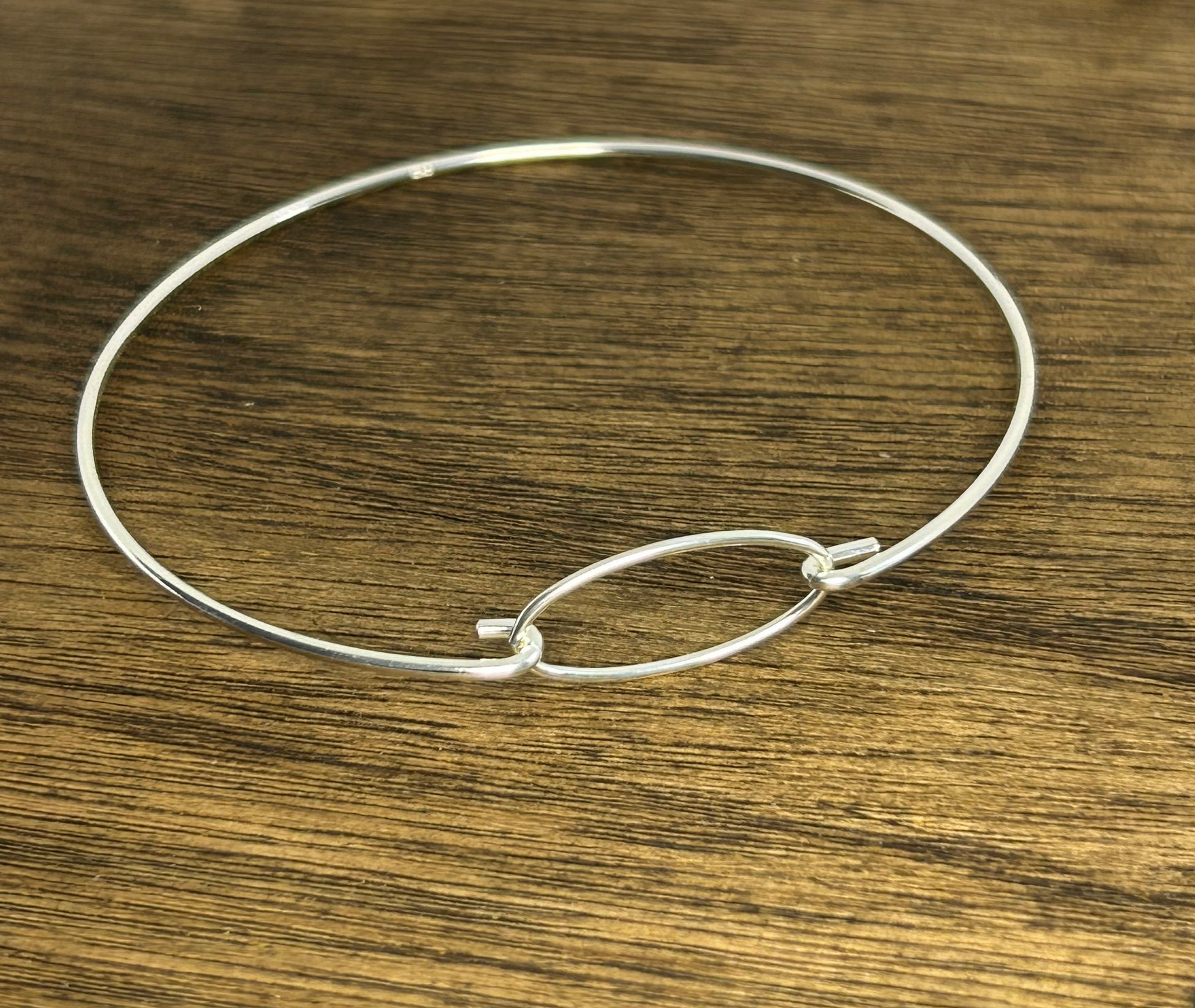 The bangle measures 7 inch’s with rounded finish and Sterling silver oval fastening.