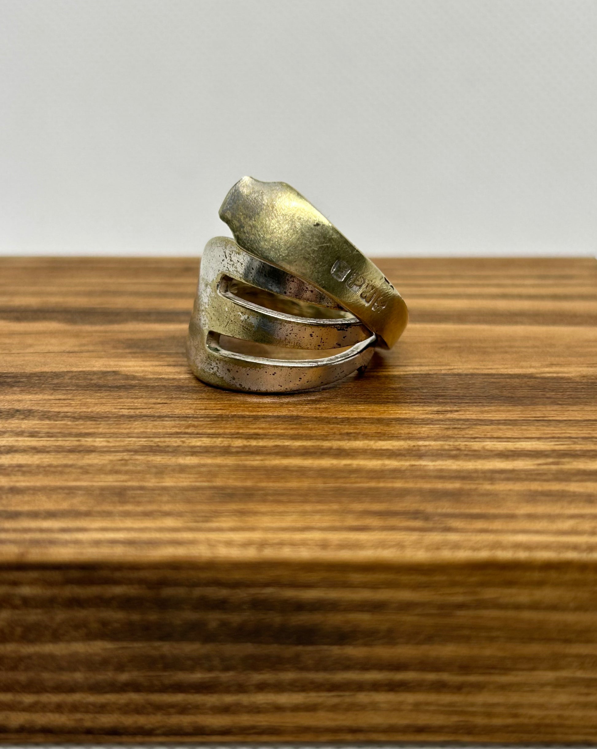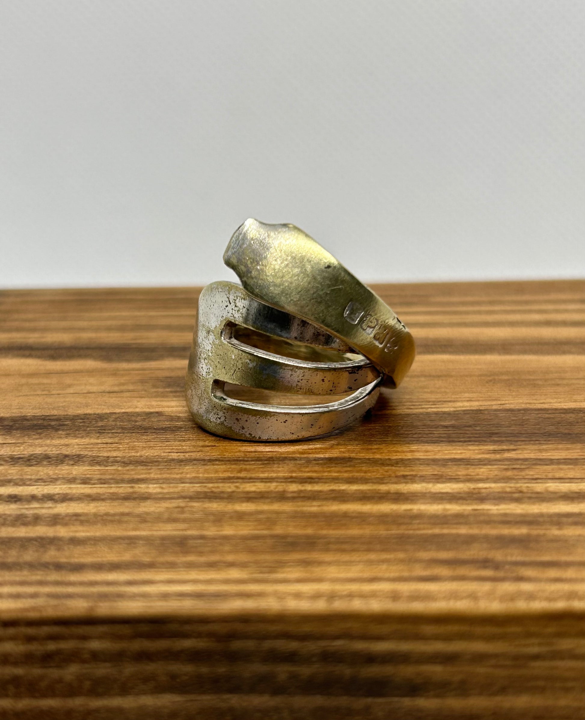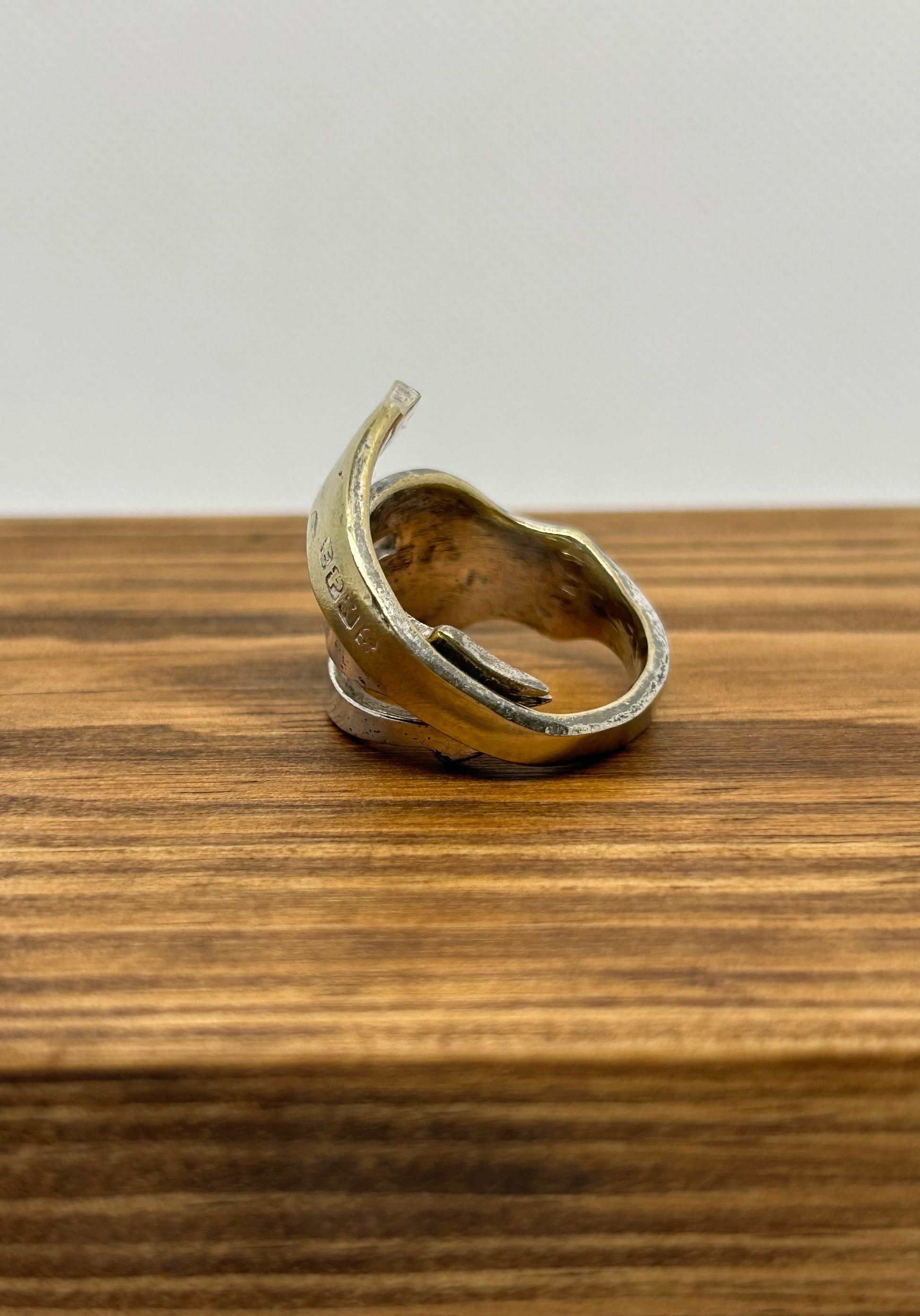 This piece is carefully bent, shaped, and polished by hand, transforming forgotten flatware into a unique statement ring that’s equal parts rustic, elegant, and eco-conscious.
