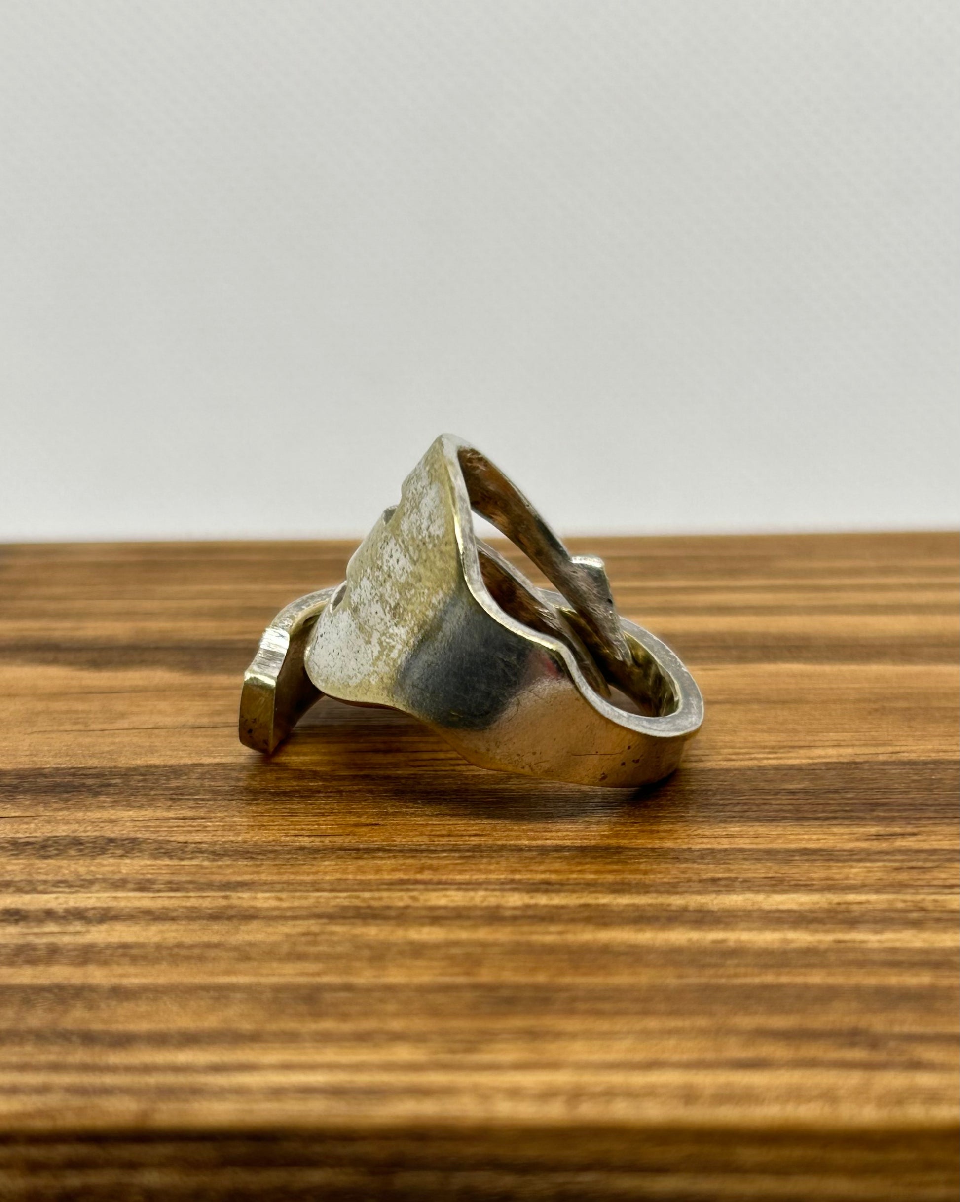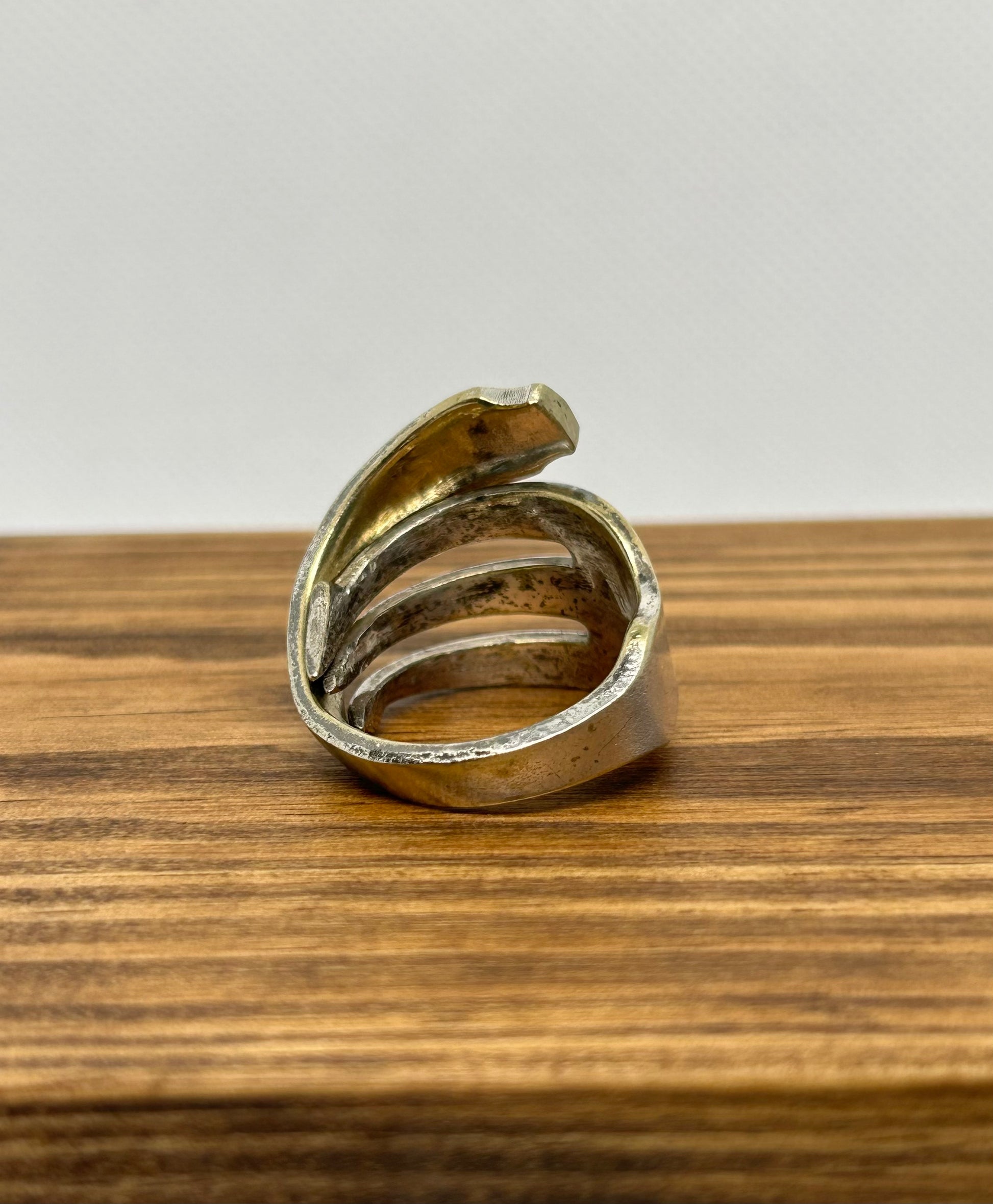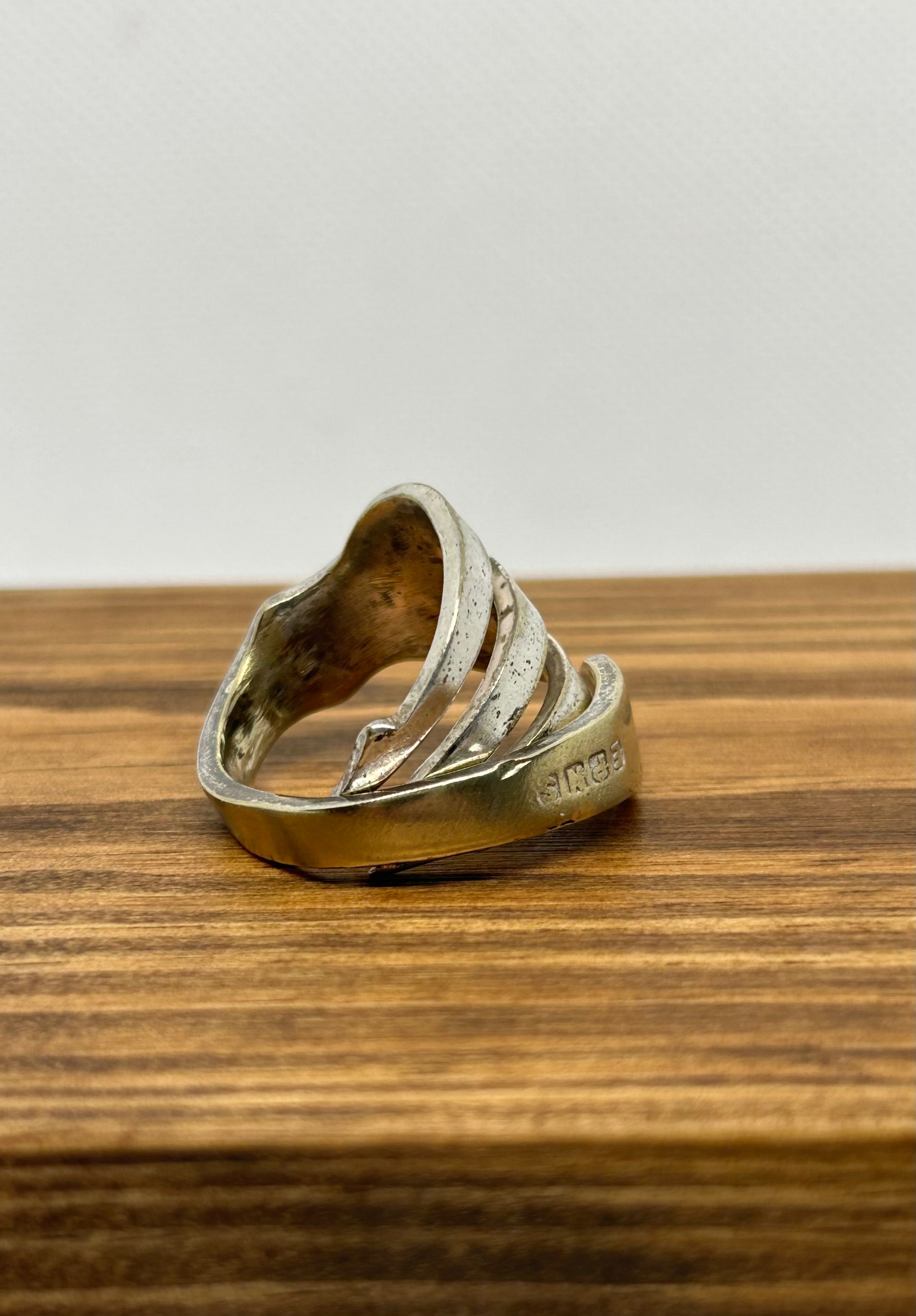 This piece is carefully bent, shaped, and polished by hand, transforming forgotten flatware into a unique statement ring that’s equal parts rustic, elegant, and eco-conscious.