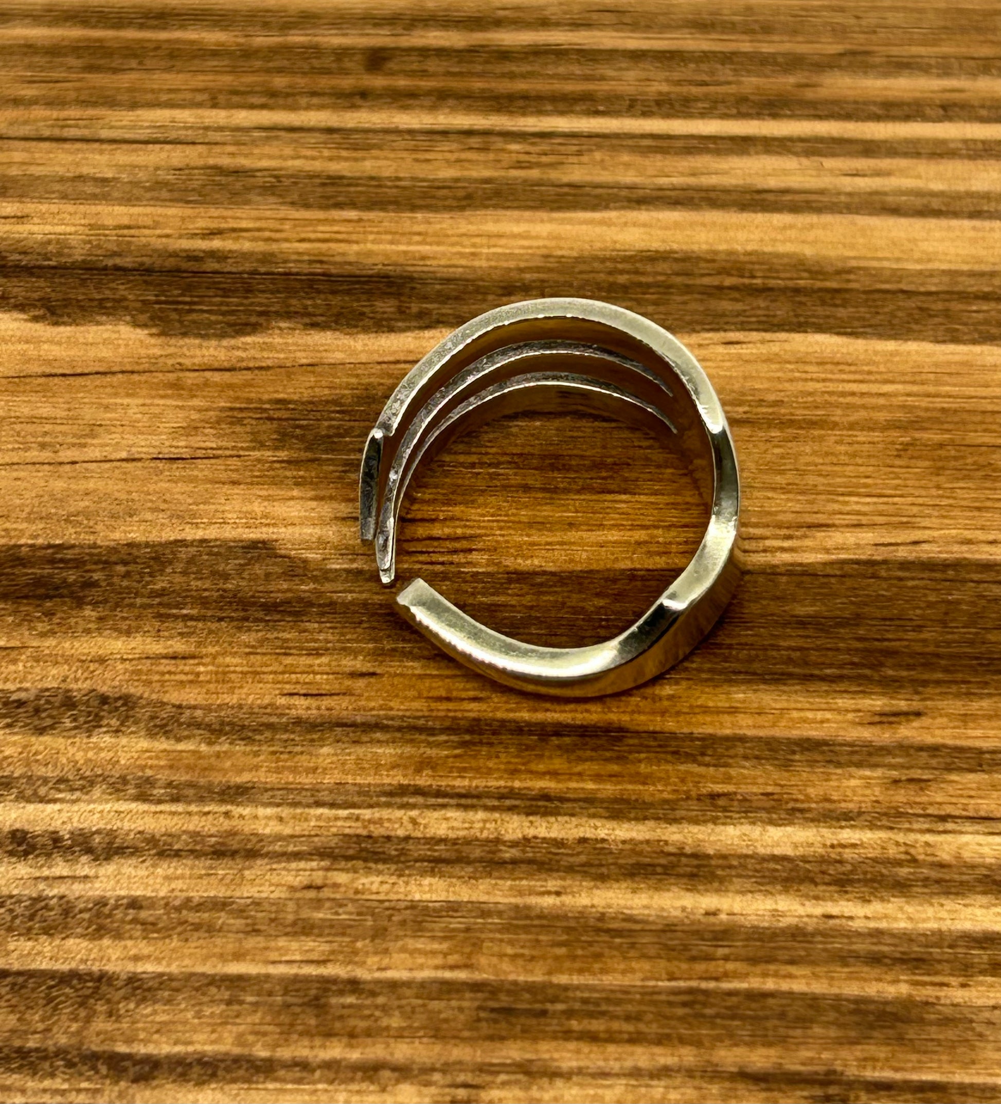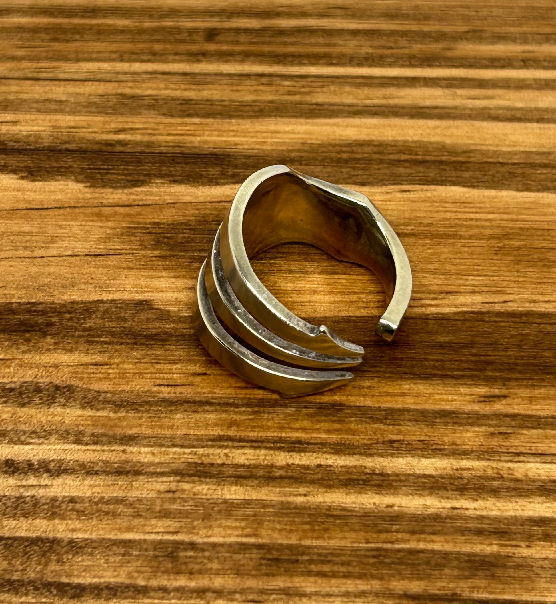 This piece is carefully bent, shaped, and polished by hand, transforming forgotten flatware into a unique statement ring that’s equal parts rustic, elegant, and eco-conscious.